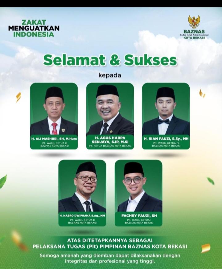 Plt Ketua BAZNAS Kota Bekasi Agus Harap Sanjaya mengatakan, periode pimpinan BAZNAS sebelumnya sudah selesai secara masa Bhakti Tugas sejak tanggal (08/04) lalu, hingga pada (09/04) kemarin, Wali Kota Bekasi Tri Adhianto segera melakukan penunjukan sementara secara estafet kepemimpinan di tubuh organisasi pengelola zakat umat.