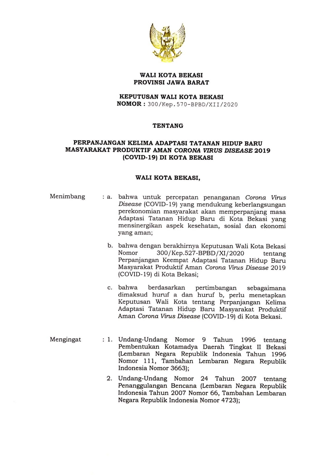 KanalBekasi.com – Pemerintah Kota Bekasi telah mengeluarkan pengumuman tentang perpanjangan kelima Adaptasi Tatanan Hidup Baru (ATHB) Masyarakat Produktif Aman Corona Virus Disease 2019 (Covid-19)…